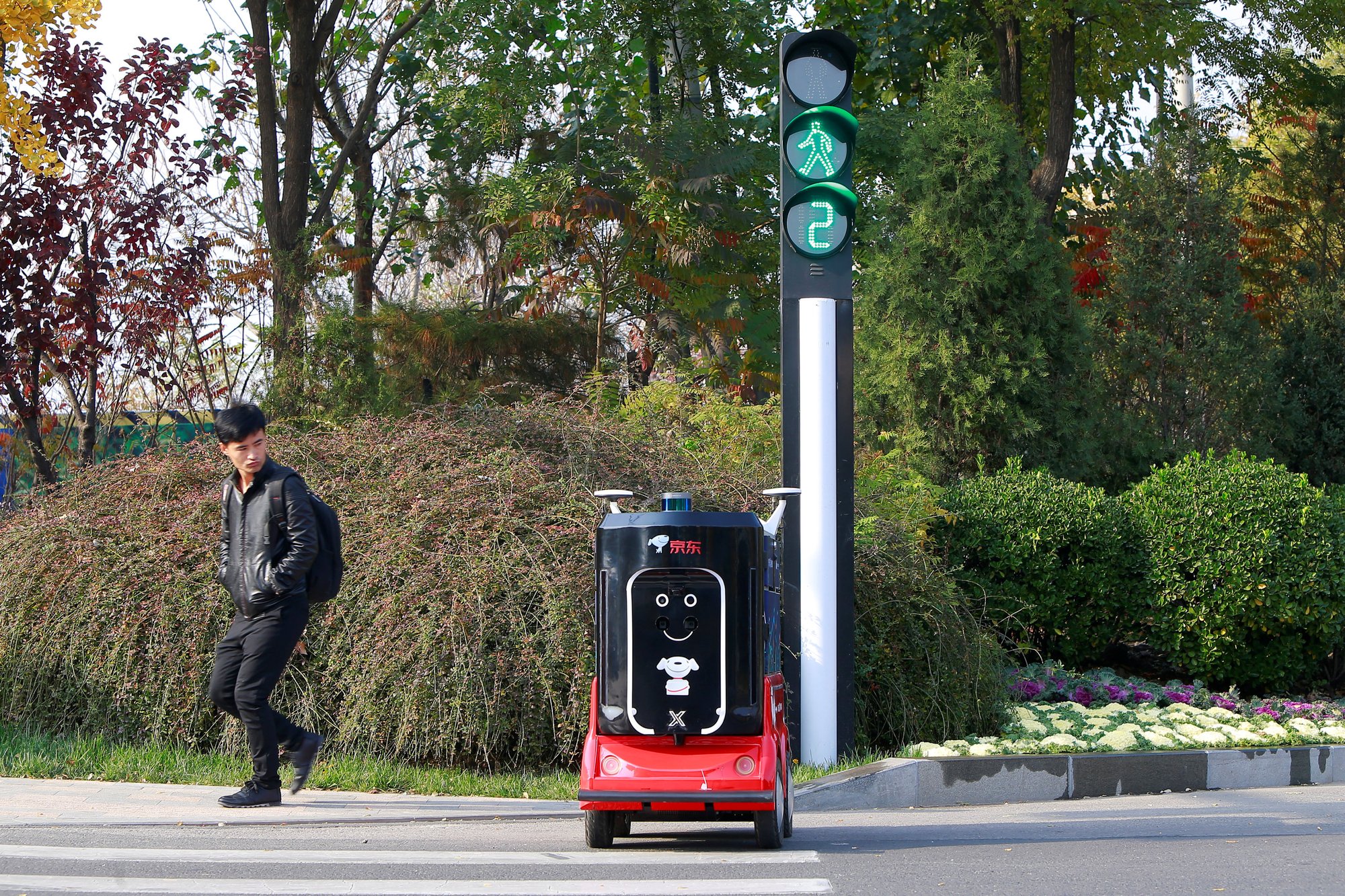 베이징 순이구 거리에서는 2020년부터 메이퇀Meituan의 땅딸막한 노란색 배송 로봇이 식료품과 포장 음식을 나르고 있다. 미니밴처럼 생긴 이 차량들은 보도의 경계석을 따라 천천히 이동하며 위로 열리는 두 개의 측면 문 안에는 주문 물품들이 가득 차 있다. 때때로 이 로봇들은 배달기사들과 협력하기도 한다. 로봇이 하차 지점에 도착하면 근처에 있던 기사가 문을 열고 물건을 꺼내 고객의 문 앞까지 달려간다.