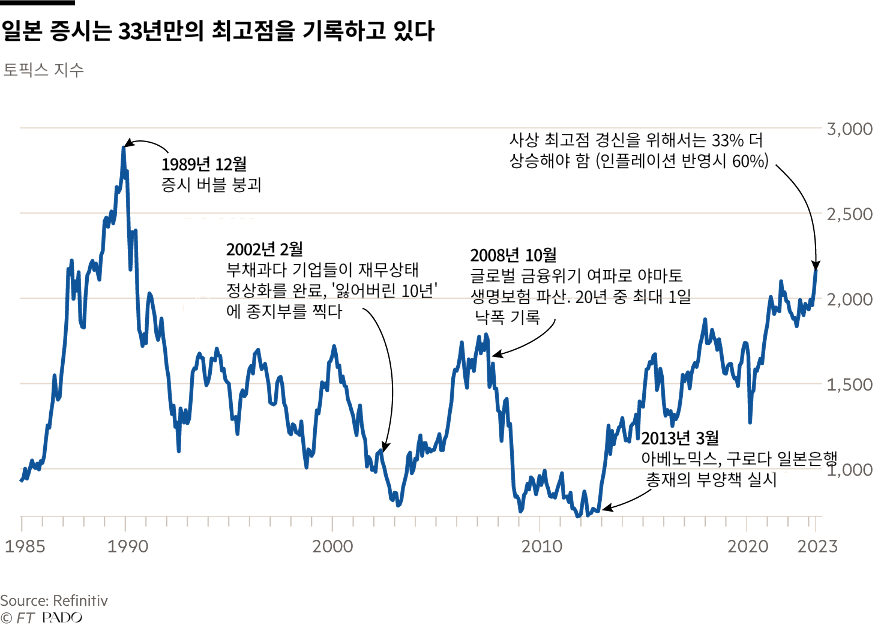 뱅크오브아메리카는 클라이언트에게 장기적으로 토픽스 지수가 33% 더 오를 수 있다고 설명하기 시작했다. 이는 1980년대 버블 시대의 최고점을 넘는 것으로, 대부분의 투자은행과 투자자들은 일본 증시가 이를 달성할 수 있으리라 여긴 적이 없다.