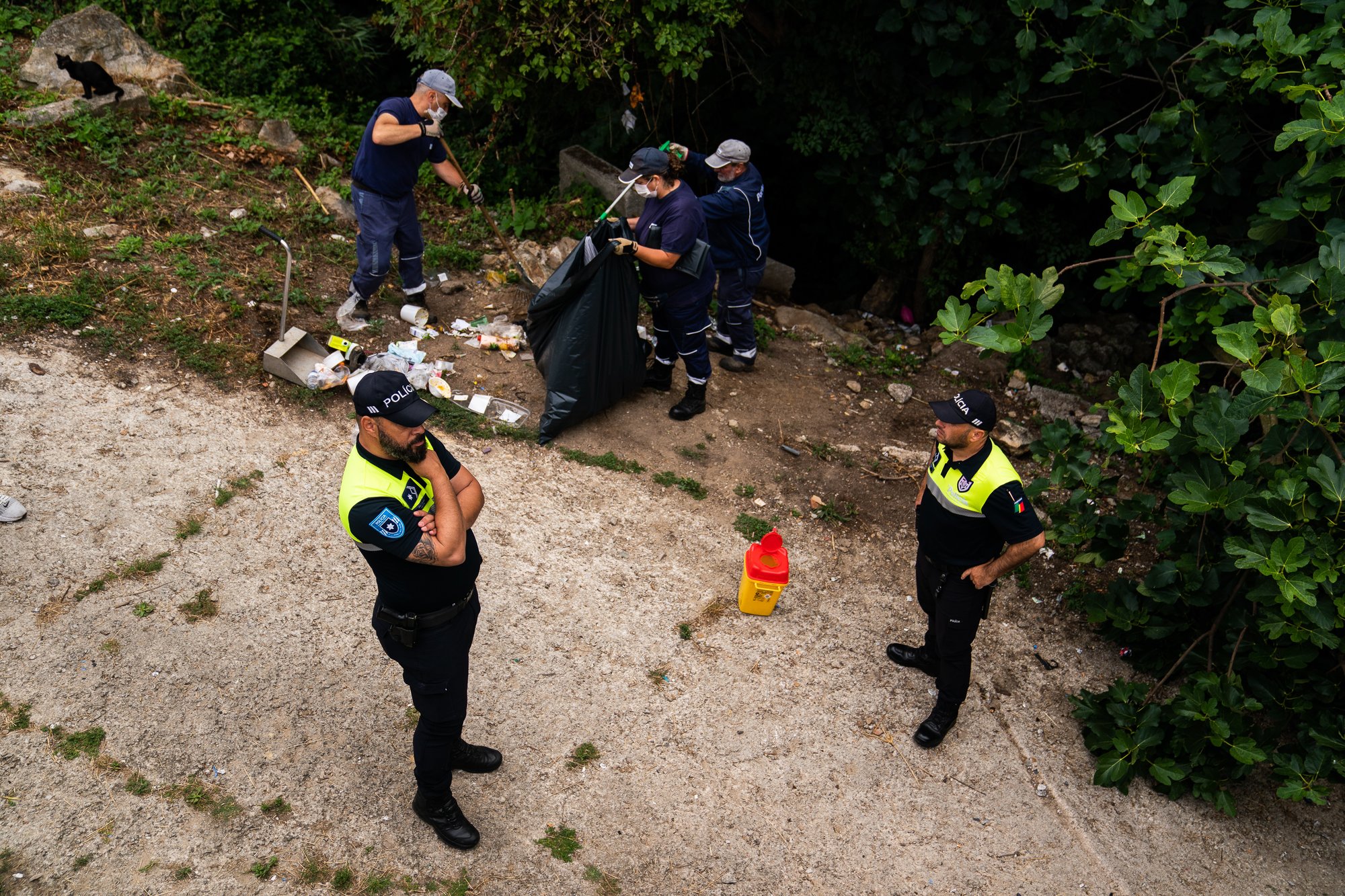 포르투 경찰은 마약 사용이 만연한 지역을 대상으로 순찰을 강화하고 있다. 하지만 현행법 상 경찰이 할 수 있는 일은 많지 않다. 최근에는 국고 보조를 받는 마약 센터 앞에서 자고 있던 줄무늬 바지의 수척한 남성 한 명을 오후 순찰을 돌던 경찰관 넷이 깨운 일도 있었다. 경찰이 깨우자 자리에서 일어난 그는 반항적으로 코카인 흡입 파이프를 조립하기 시작했다. 경찰은 고개를 저으며 현장을 떠났다.