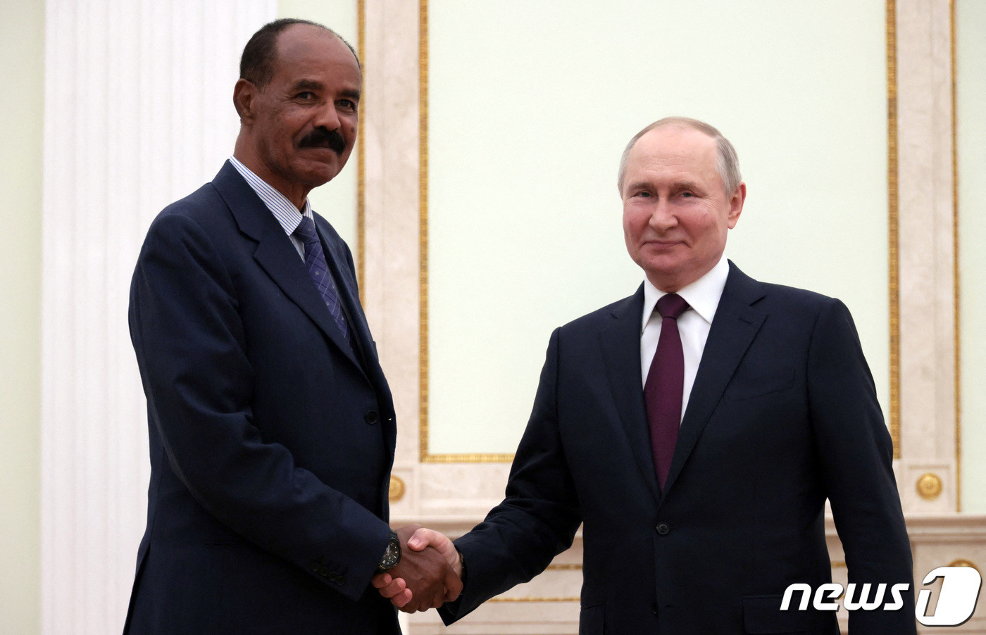 (모스크바 로이터=뉴스1) 우동명 기자 = 블라디미르 푸틴 러시아 대통령이 31일(현지시간) 모스크바에서 이사이아스 아페웨르키 에리트레아 대통령과 악수를 하고 있다. 2023.6.1 ⓒ 로이터=뉴스1 Copyright ? 뉴스1. All rights reserved. 무단 전재 및 재배포 금지.
