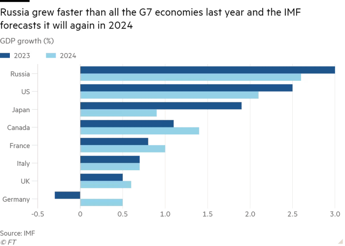 러시아 경제의 회복력은 거의 2년 전 우크라이나 침공에 대한 초기 제재가 치명적인 위축을 초래할 것이라고 믿었던 많은 경제학자들을 놀라게 했다.