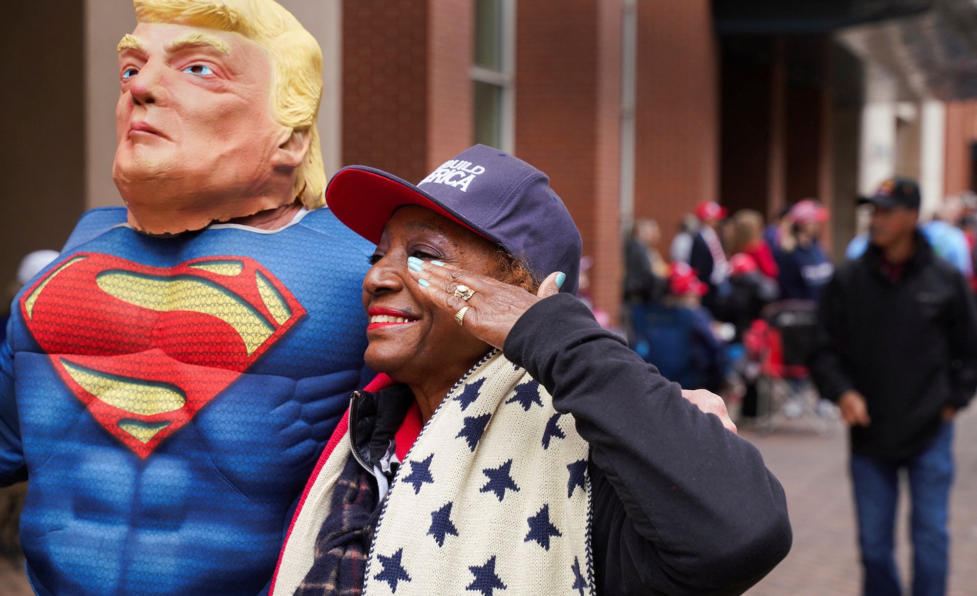 트럼프의 뉴욕 재판 이틀째인 2024년 4월 17일, 나는 139번가와 브로드웨이에 있는 사나Sanaa 편의점의 붐비는 계산대 뒤에 서서 트럼프가 법정 출두 후 짤막한 선거운동을 위해 이곳을 들를 때까지 기다렸다. 그가 미니 선거운동 장소로 이 편의점을 선택한 것은 그 역사 때문이다. 2022년, 이 가게의 점원 하나가 자신을 공격한 손님을 칼로 찔러 죽였다. 맨해튼 지방검사 브랙2은 그 점원을 2급 살인 혐의로 기소했다. (그 점원이 정당방위로 행동한 것처럼 보이는 영상이 공개되자 대중은 분노했고 기소는 나중에 취하되었다.) 계산대 뒤에 있는 야구 방망이는 여전한 치안 우려를 암시한다. 트럼프가 도착하자, 그는 예멘 이민자 출신의 편의점 공동 소유주 마드 아흐메드에게 치안에 대해 물었다. "총을 가질 수 있어야 해요." 트럼프가 아흐메드에게 말했다. "총이 있었다면 절대 강도를 당하지 않았을 겁니다."