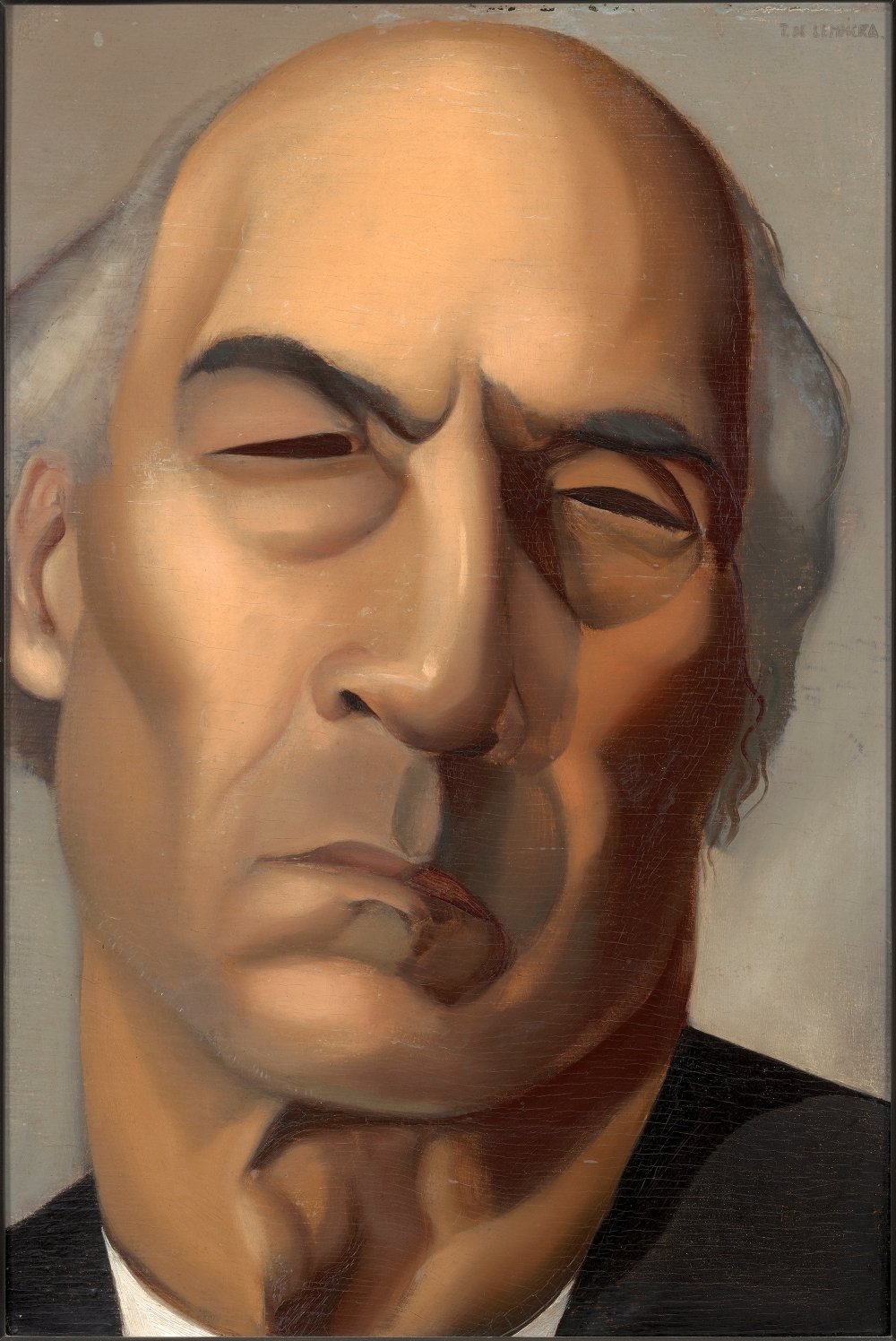 렘피카의 1925년작 작가 앙드레 지드의 초상화는 더 나은 방식으로 기억될 만한 작품이다. 이 소형 유화(판지 위에 유화)는 곡선으로 흐르는 주름, 그을린 듯한 키아로스쿠로, 그리고 유려하게 뻗은 광대뼈로 화면을 가득 채우고 있다. 지드의 얼굴은 마치 거친 수염이 듬성듬성 돋은 풍경화처럼, 좁게 찢어진 그의 생기 없는 눈에서 바깥으로 확장되는 듯한 형상을 이룬다. 이 작품은 압력과 비틀림의 대작이라 할 만하다.