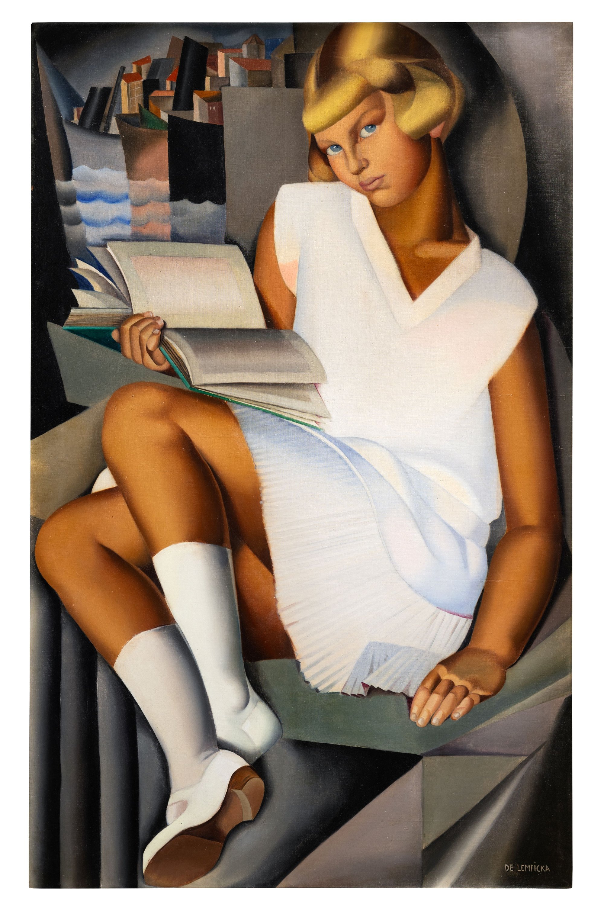 1920년대 후반, 렘피카는 키제트의 초상화로 큰 반향을 일으켰다. 그녀는 자신의 딸을 파란 눈을 가진 사랑스러운 소녀로 그렸다. 도톰한 입술과 짧고 헝클어진 금발이 인상적이었다. 말괄량이 소녀는 튜니카식 원피스 아래 무릎과 허벅지를 드러냈고, 긴 흰색 양말과 샌들을신었다. 은빛을 띤 색조는 피부의 따뜻한 톤을 더욱 돋보이게 했다. 그러나 포즈는 묘하게 불안정하다. 한 손은 이유 없이 위를 향해 뒤집혀 있고, 다른 손은 발코니 난간을 잡고 있다. 한쪽 발은 어색하게 안쪽을 향해 비틀어져 있으며, 머리는 잘려나가듯 기울어져 있다. 마치 갑작스런 성장기에 적응하지 못하는 듯한 모습이다. 키제트는 프레임 속에 자신을 끼워 맞추려 애쓰면서도, 여전히 작고 사랑스러워 보이고 싶어 하는 듯하다.
