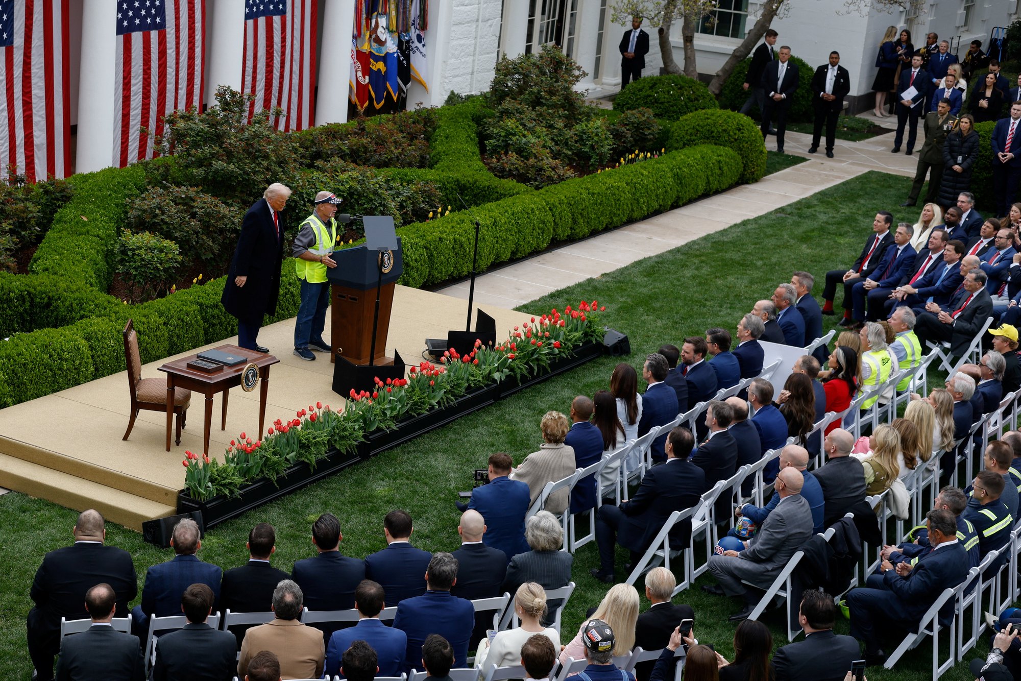 도널드 트럼프가 4월 2일 모든 미국 수입품에 대해 10%의 글로벌 기본 관세를 부과하겠다고 발표하며 연단에 섰을 때 그 옆에는 디트로이트 지역의 자동차 공장들이 하나둘 문을 닫는 모습을 오랜 세월 지켜봐 온 자동차 공장 노동자 브라이언이 함께했다. 브라이언은 트럼프의 관세 조치가 미국 기업과 미국 노동자 계층을 지원하고, 값싼 중국산 수입품을 미국산 제품으로 대체하기 위한 것임을 증언하기 위해 그 자리에 있었다. 트럼프는 무역 적자를 "국가 비상사태"라고 규정했다.