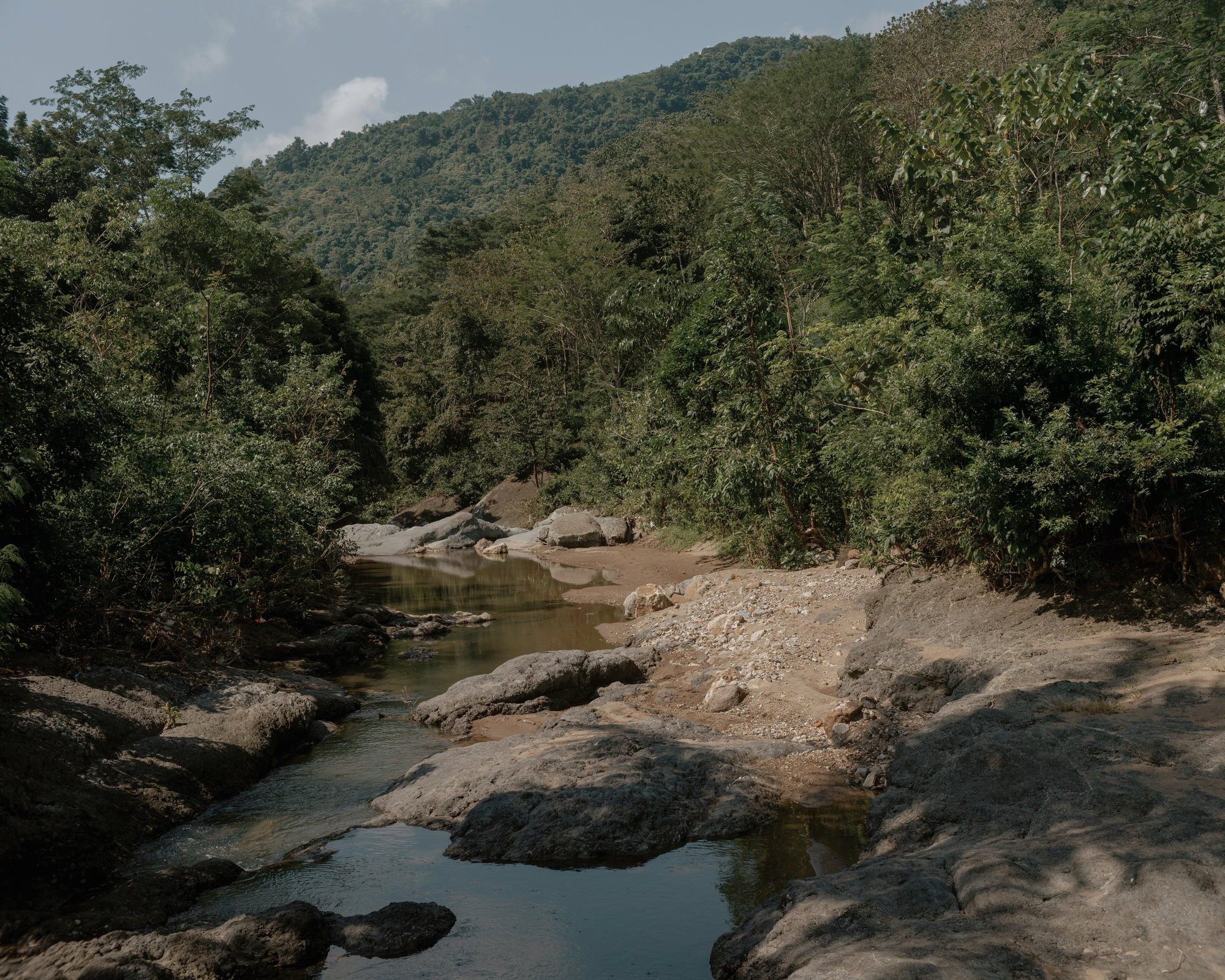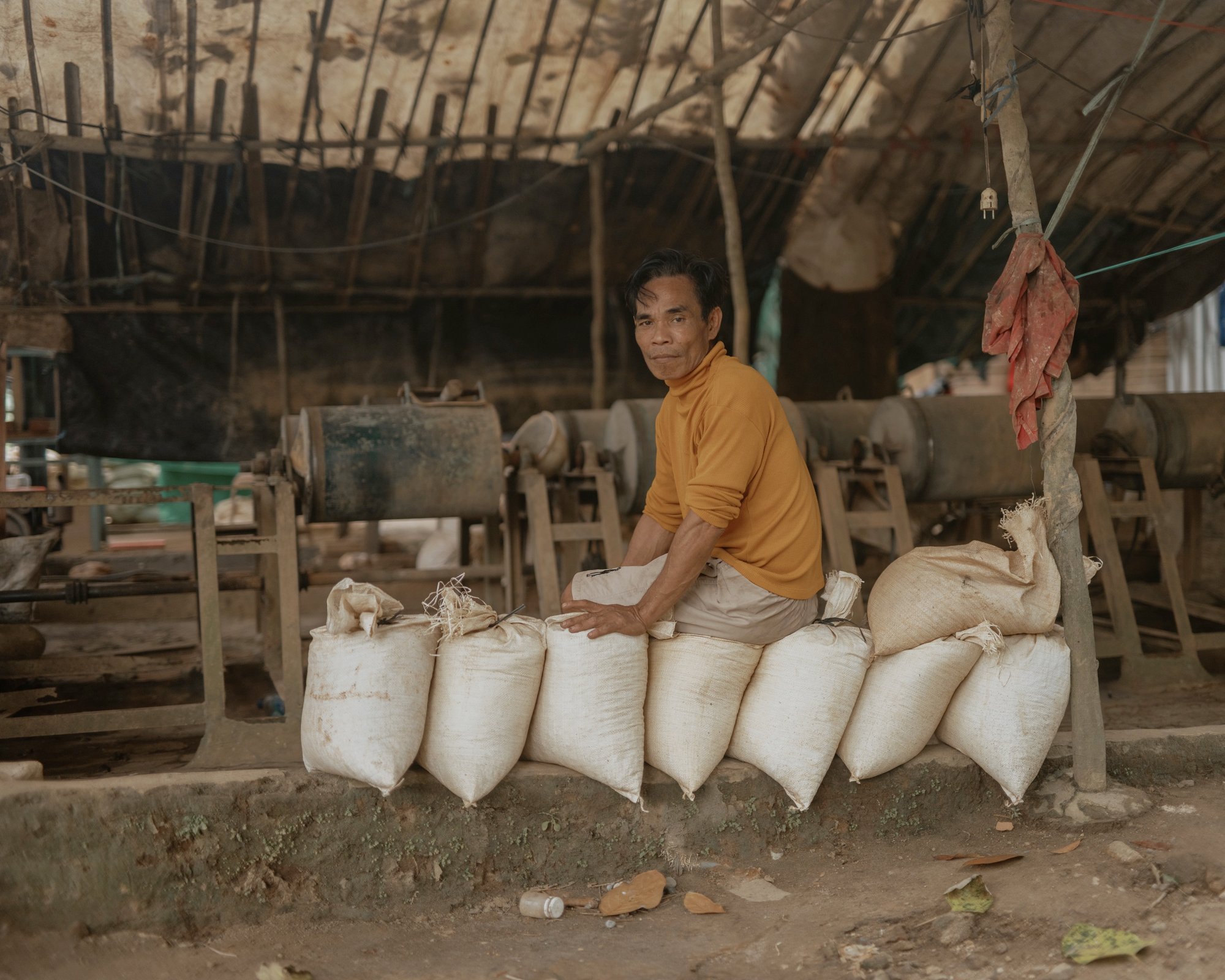 하지만 어릴 적 누비고 다녔던 정글을 바라보며 그는 때때로 중국 채굴 사업의 규모에 경외감을 느꼈다고 말했다. 그는 맞은편 바위산에 있는 아연 지붕 건물—불법 광산을 지키는 노동자들의 숙소를 가리켰다. 밤이 되어도 그 건물들의 불은 꺼지지 않는다고 그는 말했다. 파쇄기는 계속 윙윙거리고 굴착기는 계속 조금씩 앞으로 나아간다.