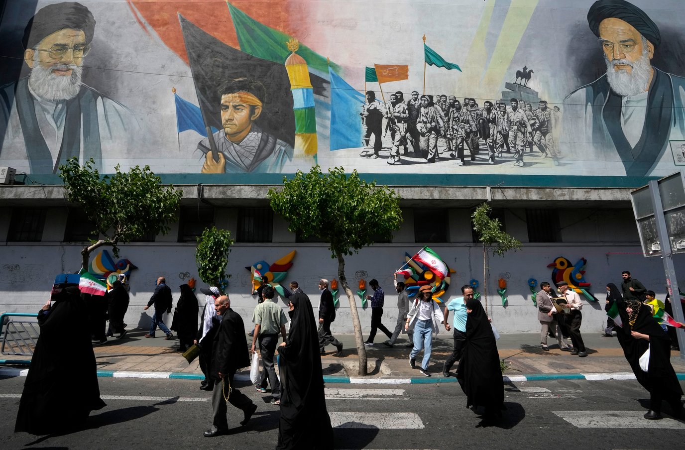 이슬람 근본주의 정권이 신호를 던지자, 수십만 명이 거리로 나왔다. 이란 전역의 도시들에서 대부분 전통의 검정 차도르로 몸을 감싼 여성들이 수많은 남성들과 함께 행진했다. 그들은 구호가 적힌 깃발, 최고지도자 아야톨라 호메이니의 대형 초상화, 이란 국기 등을 흔들며 1979년 이란 혁명 44주년을 축하했다.